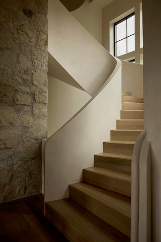 Wrapped in Ivory Hearth lime plaster, the home flows as one—soft, luminous, and tactile.