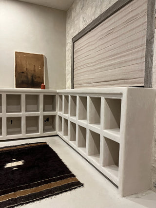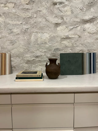 In the Marrwall showroom, Diamond Finish wraps walls, furniture, shelving, and even stone in one continuous mineral skin. It’s depth without heaviness, precision without excess — proof that plaster isn’t decorative, it’s architectural.