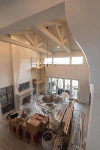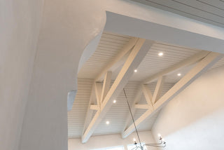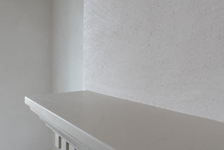 We then applied two coats of lime wash to achieve her custom 75% Swiss Coffee color.